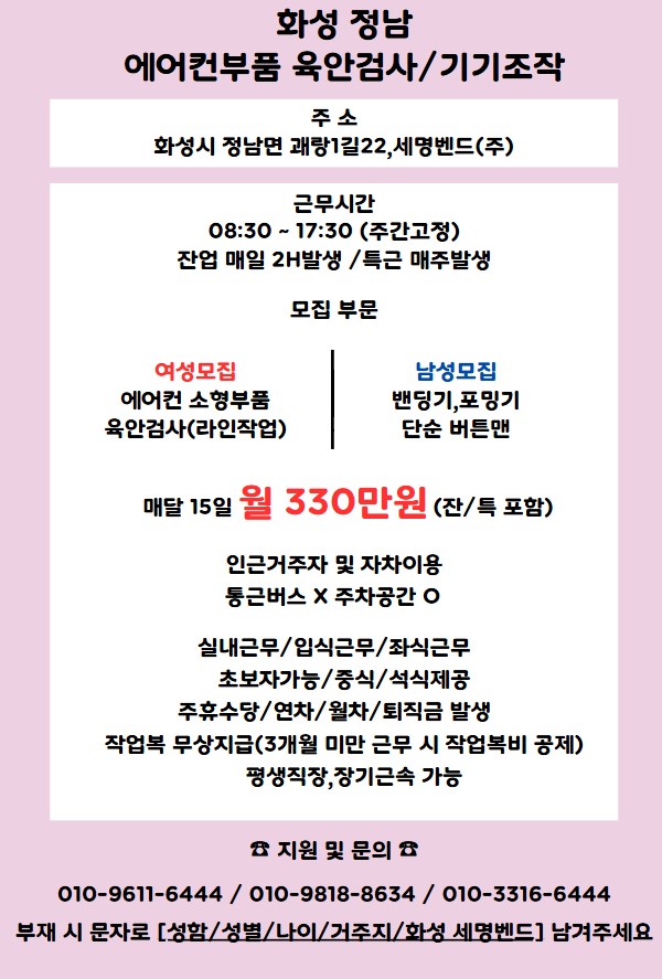 [ 화성 정남 에어컨자재 제조업체 기계조작(단순버튼맨)...