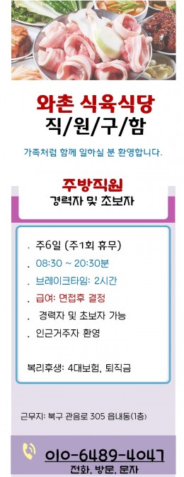 - 본 게시물은 와촌식육식당 에서 제공한 자료로 개인정보를 포함하고 있으며 임의유포, 수집, 배포가 금지됩니다.