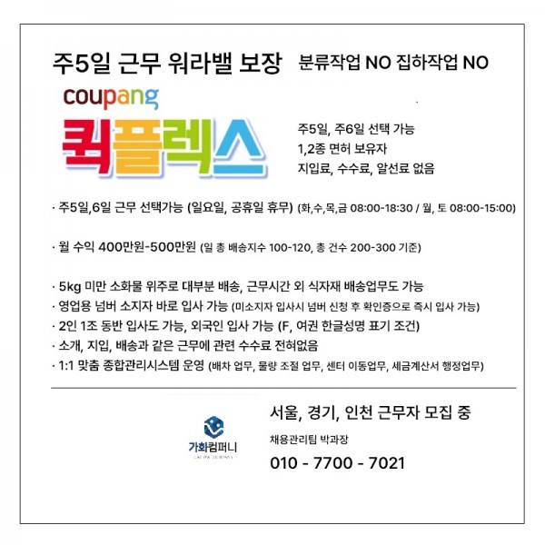 - 구인완료 이후에도 구인정보를 내리지 않는 구인회원이 있을 수 있습니다.
